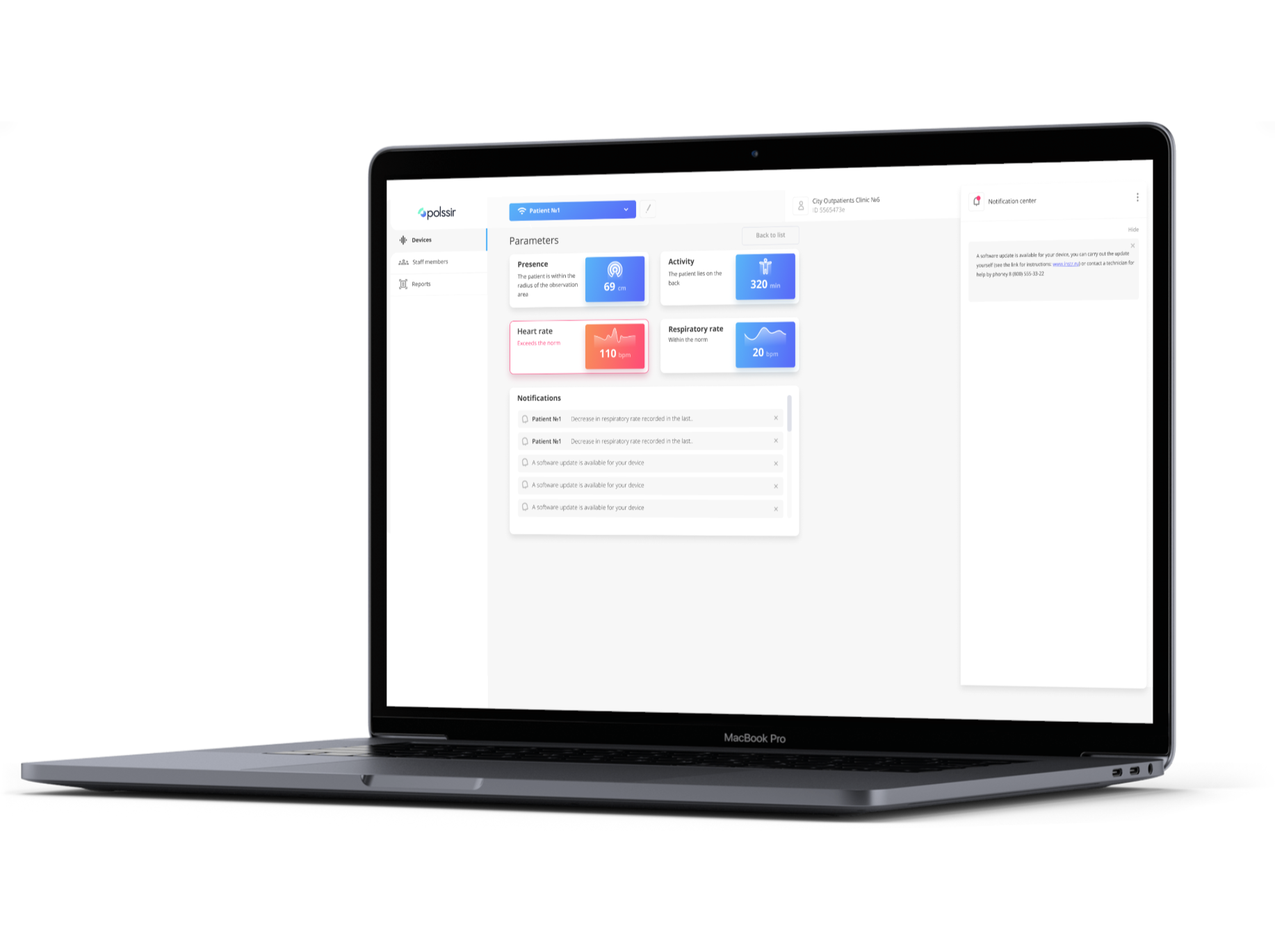 The client is an international company, one of the directions of which is the startup “Pullsir”. Development of sensors based on micro radar transmitting data to a web application via WiFi. Warning doctors, and users in case of critical deviations in a patient.