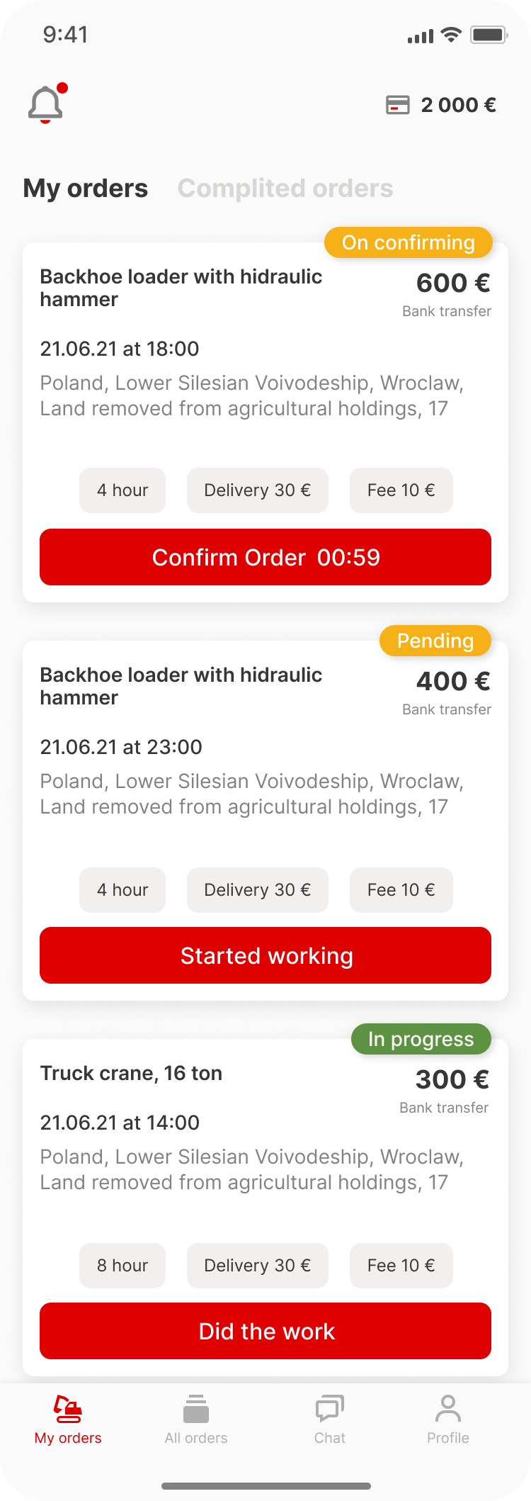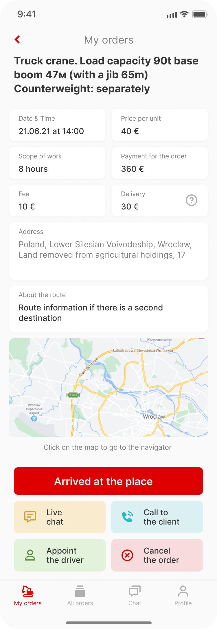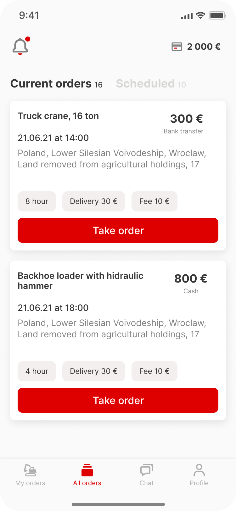 The client is the company SOWORK, which provides rental of special equipment owned by the company. The company acts as an aggregator and provides orders to its customers, owners of special equipment.